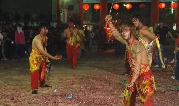 割的是乩童的舌头,流的是乩童的血,