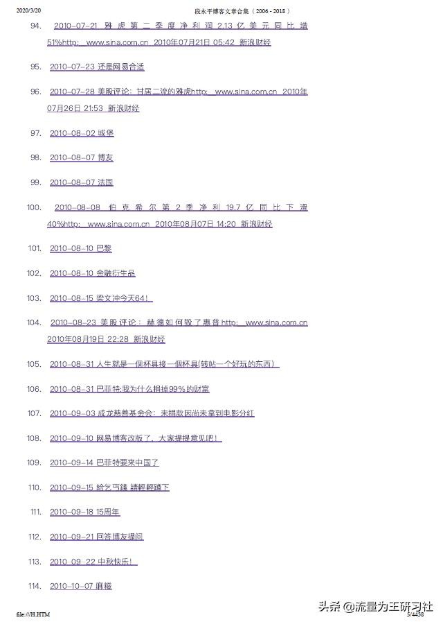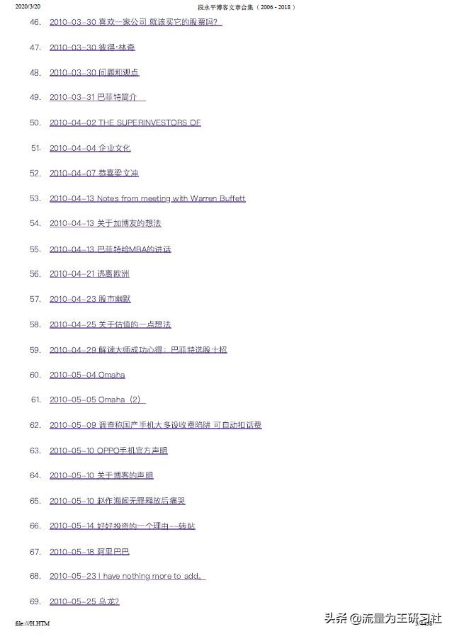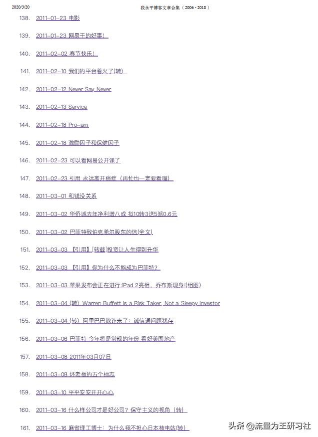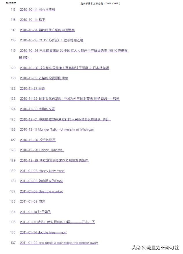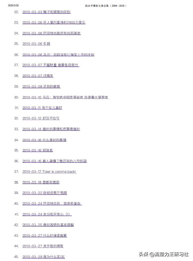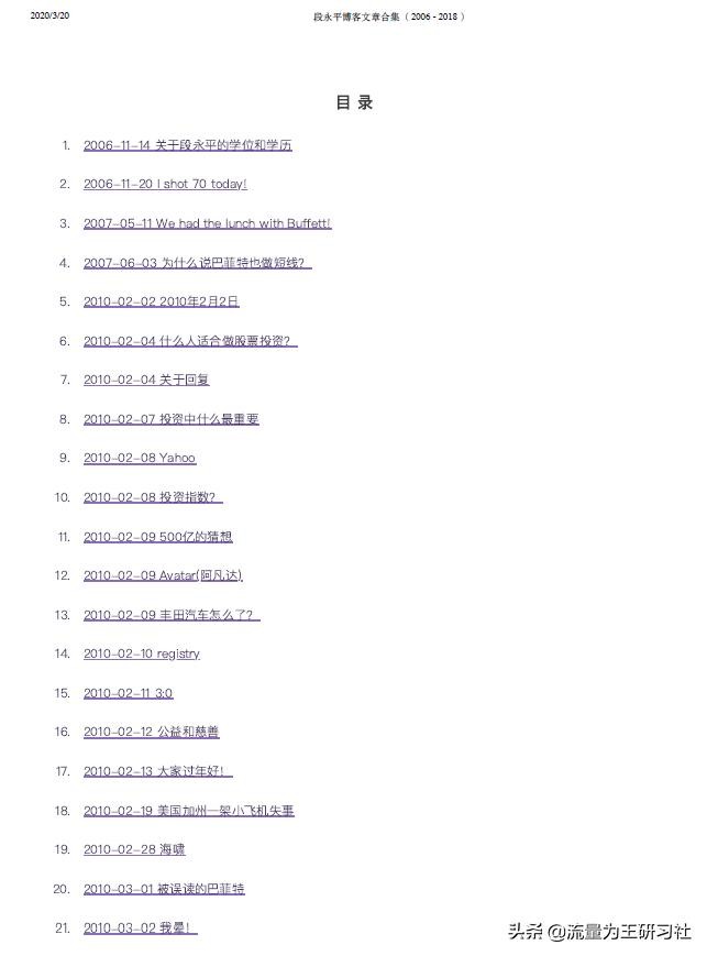 这是一份朋友分享给我的段永平博客文章合集,段永平本人非常智慧,真实,有时有点幽默。他博客里有对自己学历的介绍,小编整理好了,共计4440页,可以看很长一段时间。分享给大家,文末有获取方法。