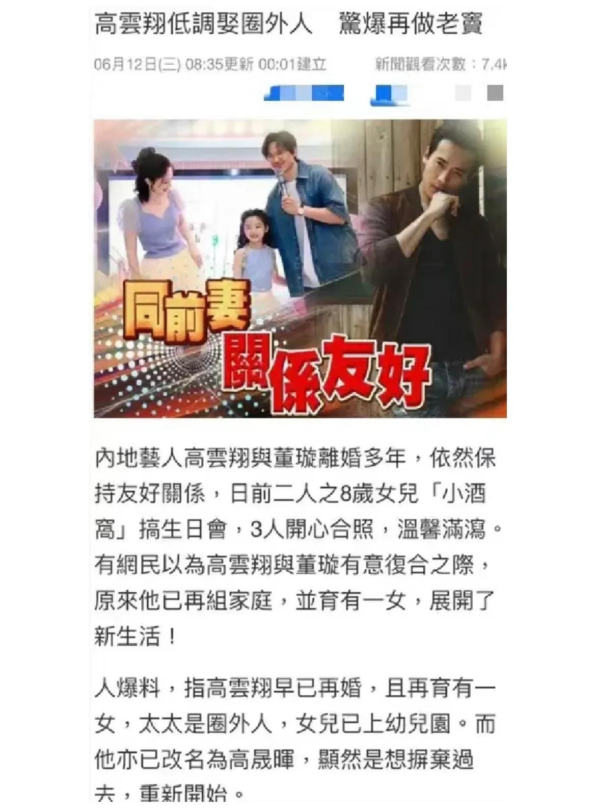 前几天还出席女儿生日宴的高云翔竟然二婚了?据说二婚又有个女儿