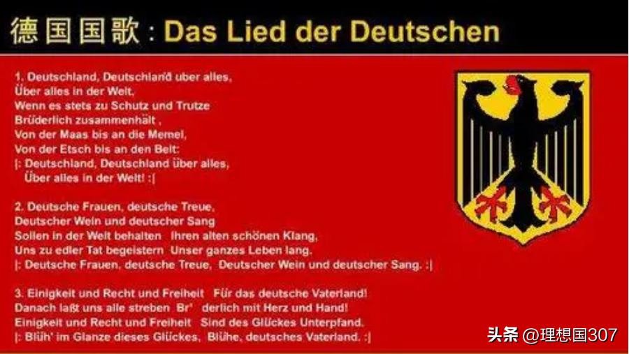 13、德国的国歌。以前东德的国歌是《从废墟上奋起》、西德的国歌是《德意志之歌》。两德统一后,把《德意志之歌》作为国歌。