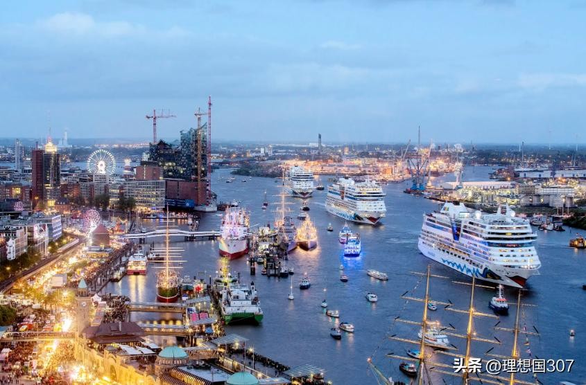5、德国最大的港口城市是汉堡。这座城市是建造在沼泽地之上,河流众多,桥梁遍地。而汉堡港位于易北河河岸,离北海还有120余公里,其实作为港口城市很勉强,对于后发的国家来说,也是没有办法。