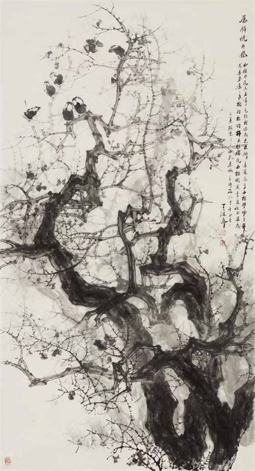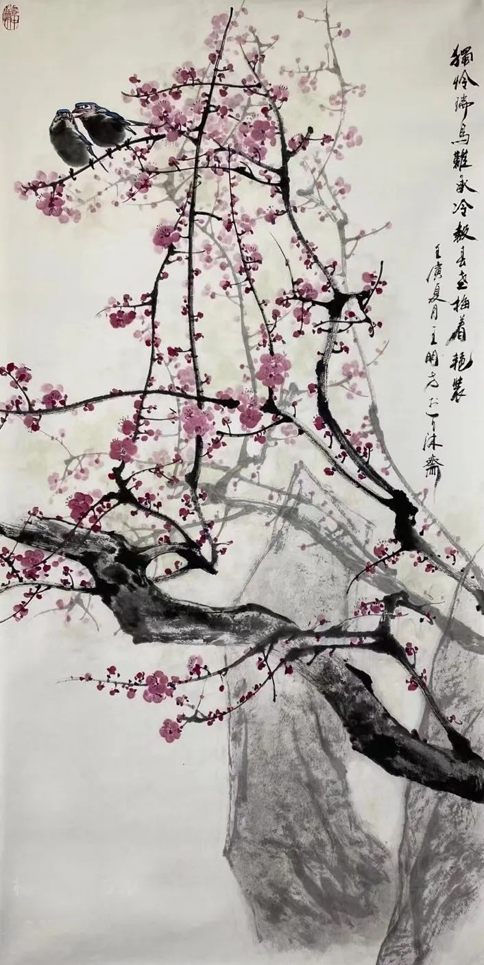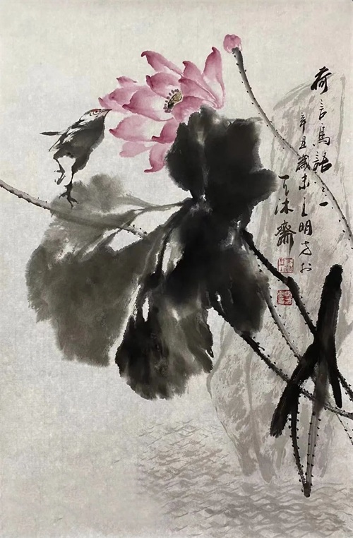 明方先生是位不入局的人,他深入研读文人画的传统,取其精华,运用到自己的绘画创作中。他说:“千百年来的中国画,形成了诗书画印集于一纸的审美定式……其丰富的精神内含,远远超出纯粹的视觉范筹。”他在自己几十年的笔墨生涯中,在磨练书画能力的同时,没有轻视文辞方面的修养。每完成一幅画,都尽可能配上自作的诗文短句,……使自己的花鸟画作具有较浓郁的文人气息,从而在继承传统的基础上多一些儒雅,在去除世俗重复的同时,少一些轻狂。