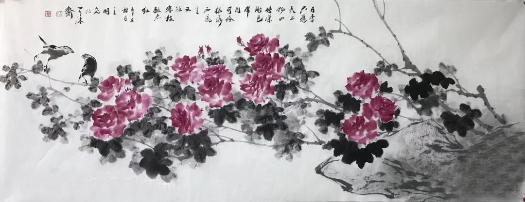明方先生这位农民的儿子,像父辈一样,在花鸟画这一亩三分园地里,心无旁骛,潜心默默耕耘着。不为世俗的浮燥所左右。这是难能可贵的,是有大定力、大智慧才能做到的。