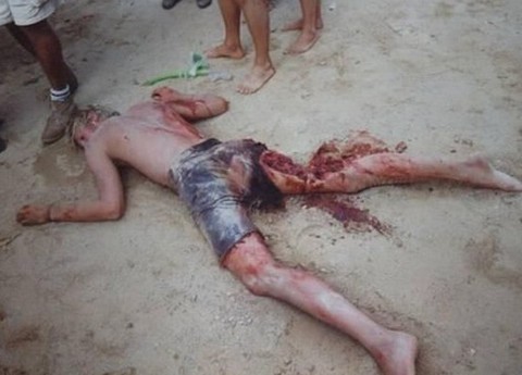 他在春天湖上一个红色独木舟中,突然,他一声尖叫,一个女人听到他的尖叫,看到他的红色独木舟翻倒,这个女人马上喊救生员,周围的水变成红色,当救生员将他救上救援艇,他已经去了他的两个小腿。在救援艇到达海滩前,他失血过多死亡。