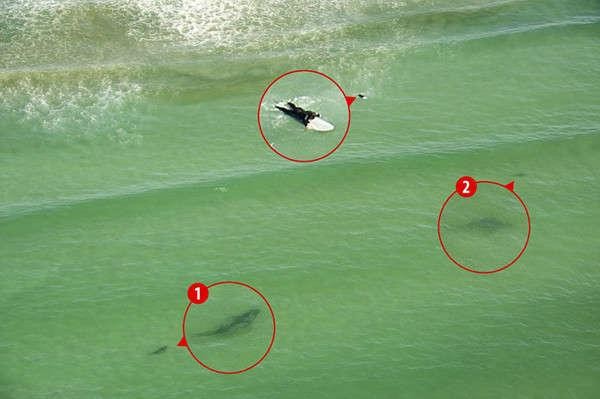 女子海边冲浪身后跟了5条鲨鱼 实拍鲨鱼吃人残忍过程