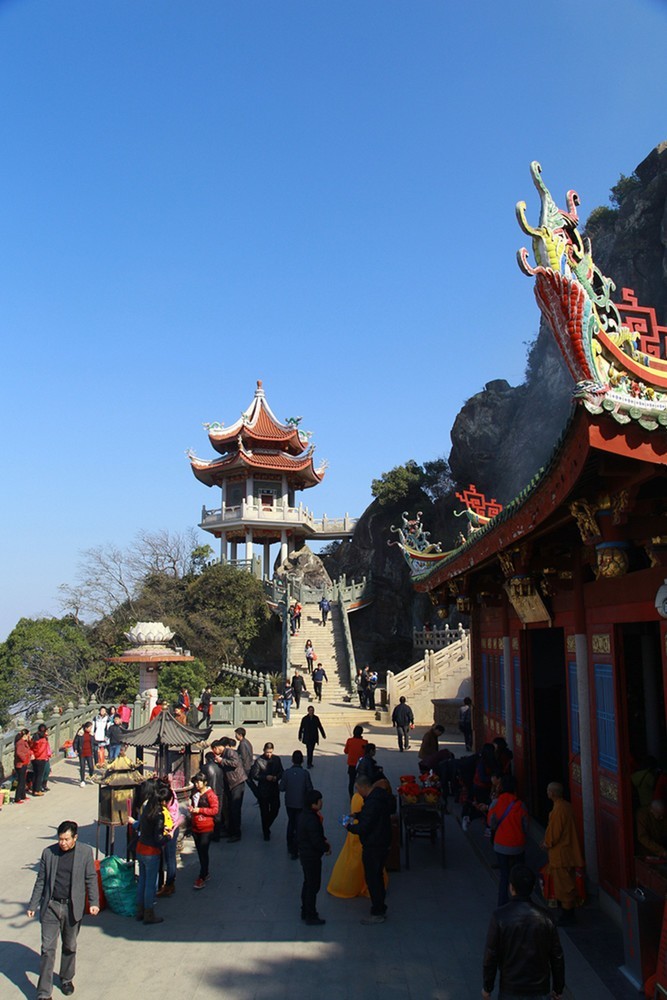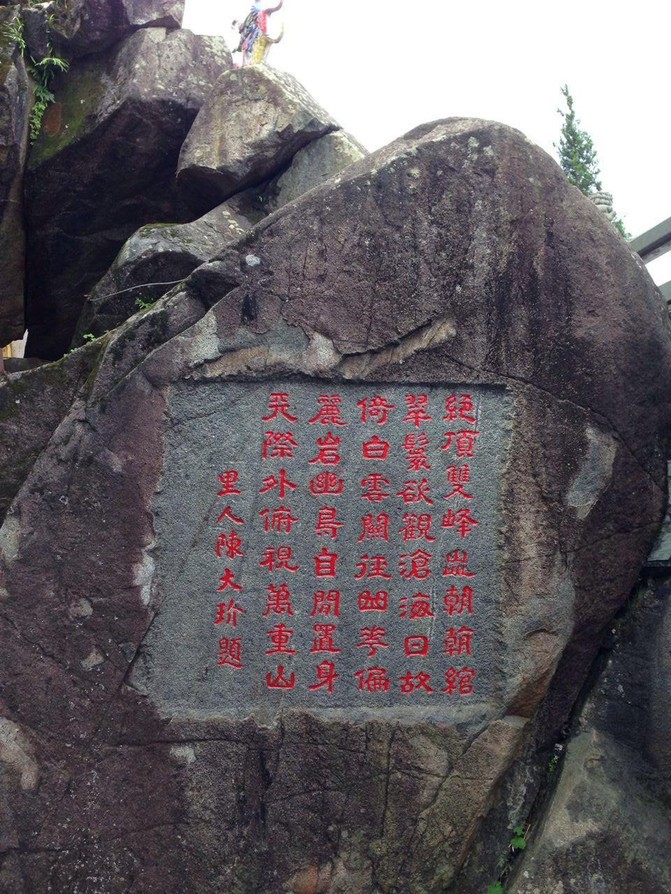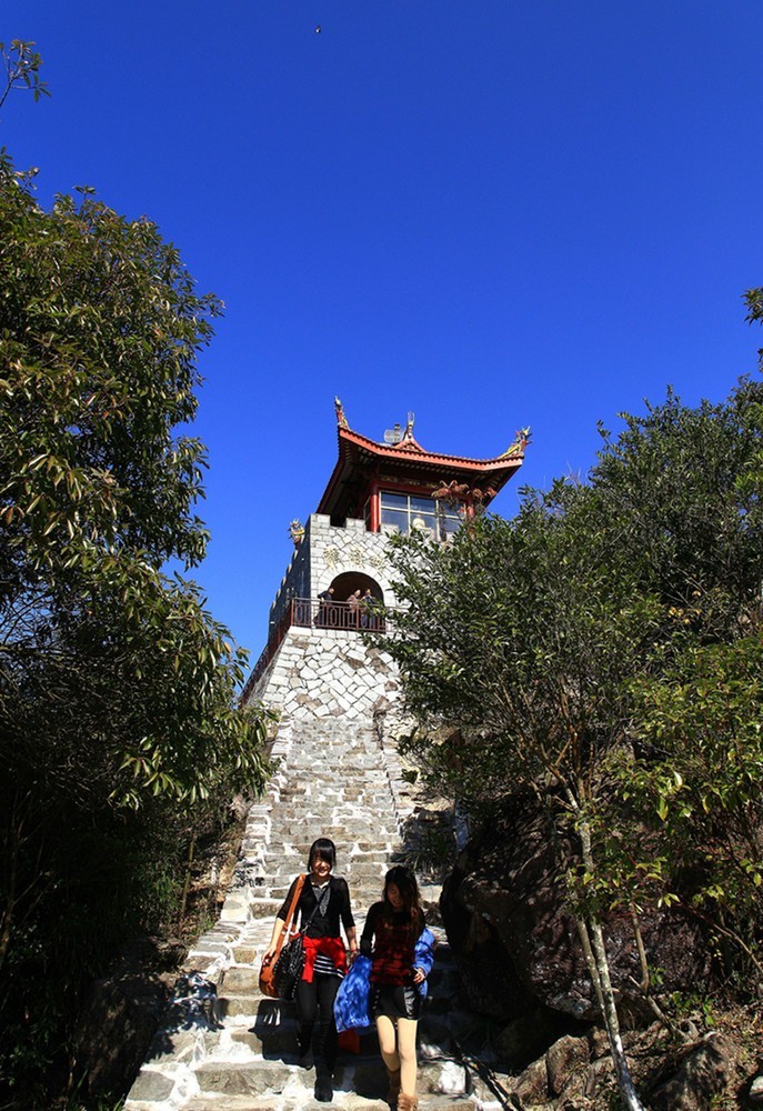 山上还有一处“会当陵绝顶,一揽众山小”的地方——观日台。“观日台”为清朝太常寺卿陈大所题,台面二米见方。清晨,屹立立台上,远眺东方,可见一轮红日跃海喷礴而出,冉冉升起,海天同辉。清人万际昌有诗云:“攀萝寻鸟道,侵晓上峰巅,霞气涵沧海,波光接远天。山空孤日落,云净一星悬,曾说和驭,相催日复年。”抒发的就是在这里观日出的感怀。