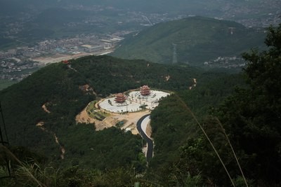 在登山的“仙路”途中左侧,亭为六角形,双亭紧邻连接,俗称“连心亭”。亭盖为黄色琉璜瓦,是游客登山路上小歇及眺望山景的路亭。