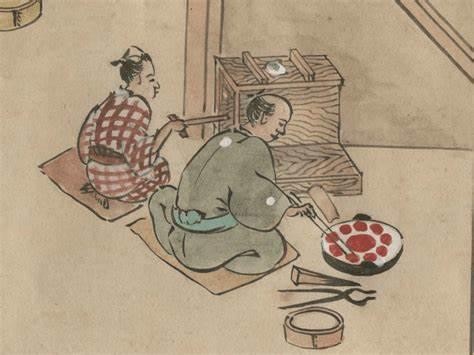日本江户时代佐渡金山的灰吹法炼金绘物。