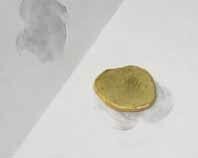 5。向下一面因为与坩埚底部的灰层接触,而灰层是疏金液的物质,金液对于灰层没有浸润性。因此金饼向下一面就是完美复刻灰层表面的坑坑洼洼的样子。