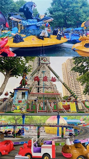 里面的游乐园也依旧存在,虽然地方不大,但娱乐项目却不少,可以说是麻雀虽小,五脏俱全,无论是刺激的海盗船,还是摩天轮旋转木马,又或是水上碰碰船,都趣味十足。