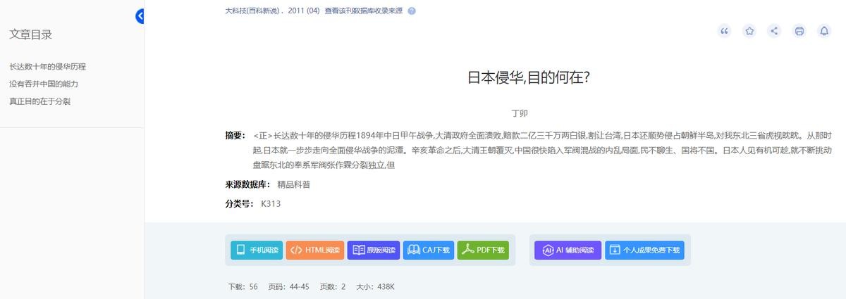 丁卯.日本侵华,目的何在?[J].大科技(百科新说),2011,(04):44-45.