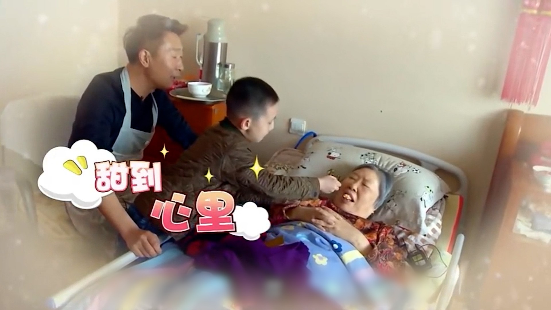 林大竣看到后,也学着爸爸的样子,小心翼翼地拿起勺子,给奶奶喂饭,这一幕实在是太温馨了。