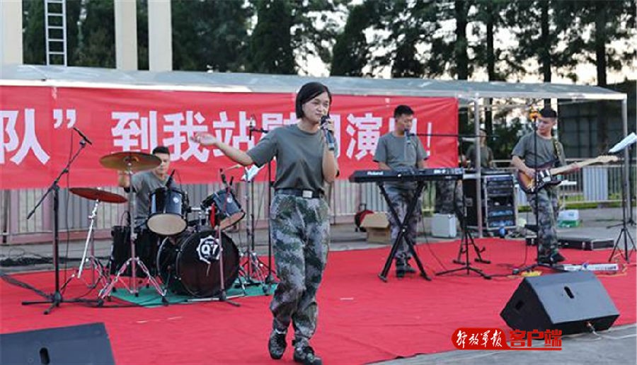 走基层,到点号,烽火乐队的巡演的舞台大多搭在一线战位。没有绚丽的灯光,没有高质量的音响设备,面对眼前年轻且富有朝气的官兵,队员们以蓝天白云为背景,把训练场当做舞台,演绎着一曲曲最美通信兵之歌。