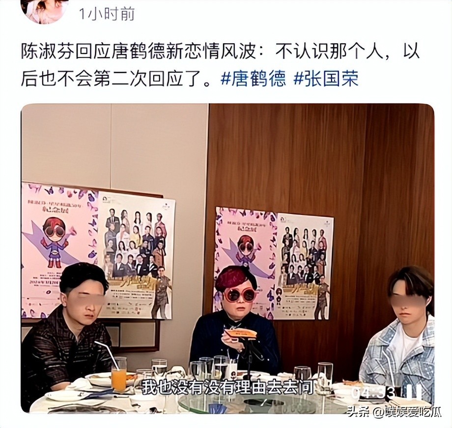 她直言自己性格使然,不会刻意去问别人的隐私,只要别人不说,她都不会过问也不感兴趣。关于唐鹤德新男友一事,她也是在事情发酵后才去看了几张照片,发现并不认识那个人,不知道他的名字,也没听过他的事,对他一点印象也没有。