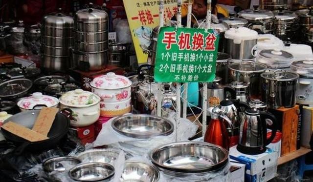 现在的农村,一般都有那种收购旧手机的,平日里走在大街上,特别是在集市里面,常常会看见一些外地人在街边挂着一个大牌子,上面写着“旧手机换脸盆”的字样,更有的人骑着摩托车挂着大喇叭,走街串巷地喊。一般来说,一个手机换一个小脸盆,两个或者三个旧手机可以换一个大脸盆,而不少人被此吸引也会驻足围观。