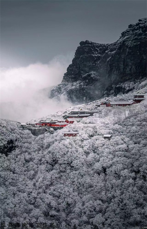 每到冬天,这座“天空之城”就会变成银装素裹,玉树琼花铺陈在群山峻岭间,红云金顶、蘑菇石在茫茫云海中若隐若现,红墙朱瓦则为这场冰雪奇观涂上唯一亮色,天上人间唯有此处。