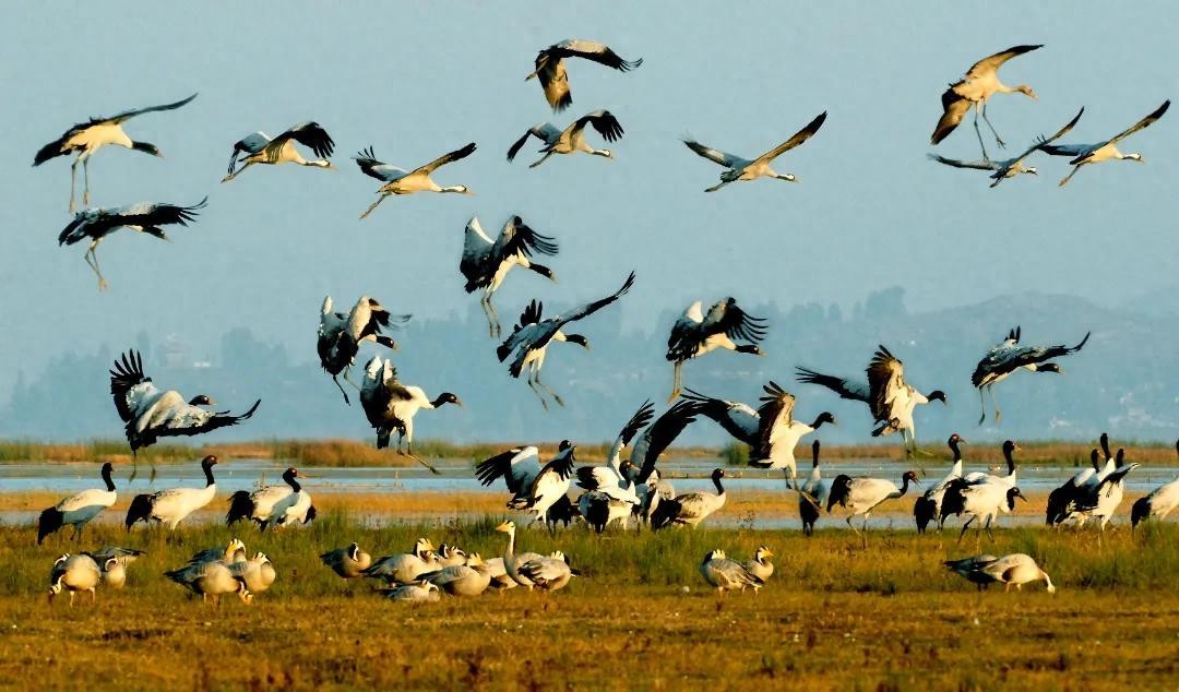 这里是国内黑颈鹤重要越冬栖息地之一。每年冬天,除了上千只黑颈鹤,还有约10万余只候鸟来此越冬。近日,已有大量候鸟抵达草海,标志着草海观鸟季最佳时节到来。快来草海一睹“水天一色,万鸟齐飞”的迁徙场景吧。