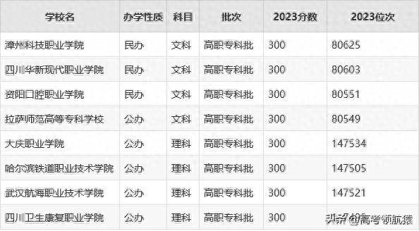 2023年全国大学在陕西省文理科中300分的大学有8所,均为专科批大学。