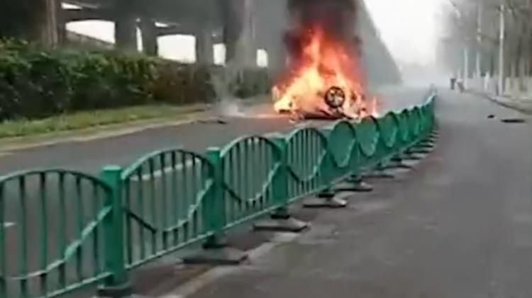 涉事车辆疑似为标致5008,车辆车速较快,在主路下辅路的匝道分叉口位置高速撞击了中央隔离墩。从车辆状态来看,涉事车辆并未采取相关制动、避让等措施,最终由于猛烈撞击反弹至匝道边,从桥上掉落,撞击后车辆燃起熊熊火焰,事故现场极其惨烈。