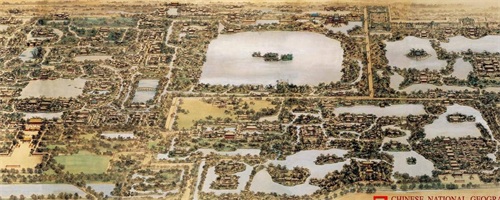 不过有一点还得要解释一下,元春省亲时薛宝钗诗中有一句“芳园筑向帝城西”,“帝城”指北京城中的紫禁城。根据她的描述,大观园应该在紫禁城西部才对。