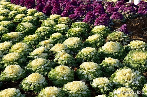 2、甘蓝/B. oleracea,起源于地中海周边,南北朝时期传入中国。甘蓝之于欧美,犹如白菜之于我国,在我国人民生活中的地位次于芸薹,可列为榜眼。其形态变化能力犹胜芸薹,可分为叶用型、薹用型、茎用型、芽用型、花用型等五个类型,还有一个观赏园艺变种羽衣甘蓝/var. acephala,性耐寒,风雪亦不能奈它何,北方城市街头花坛常有。