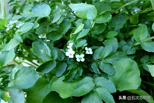 6、豆瓣菜/N. officinale,多年生水生草本,源于地中海沿岸,欧、亚、北美皆有分布,国内从南到北多个省份有野生,唯两广地区作蔬菜栽培。食用始于欧洲,传入中国不过百年左右,故称“西洋菜”。在珠三角地区是重要的冬春蔬菜,生食、炒或涮火锅或煲汤都行,有类似芥末的辛辣味,吃起来颇为爽口。北方虽有野生,然菜市场和餐桌不可见。