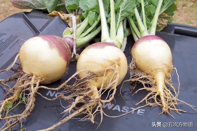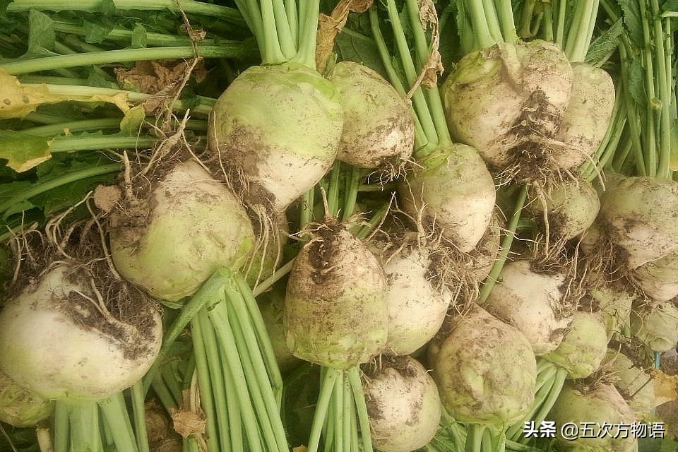 4、欧洲油菜/B. napus,芸薹和甘蓝的杂交种,性状偏向于甘蓝,主要油料作物之一,各地的油菜花田多是本种,嫩茎叶和花薹亦可作蔬食,但市面上少见。另有变种蔓菁甘蓝/var. napobrassica,东北称“布留克”,江苏称“洋大头菜”,块根供蔬食,盐腌或酱渍,又可炒食或煮食,生吃也行。注意,块根露出地面部位为青紫色,可与芥菜疙瘩、芜青相区别。