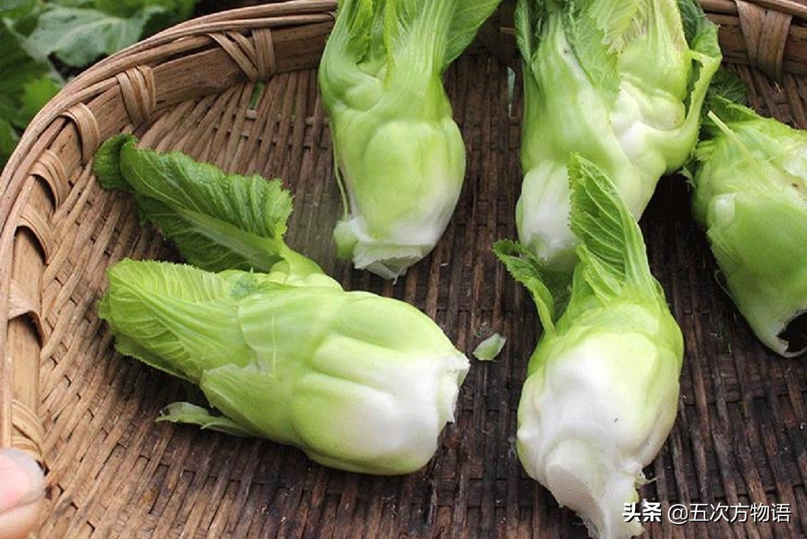甘蓝系蔬菜多在欧洲育成,薹用型的芥蓝/var. alboglabra却是在中国南方培育出来的。芥蓝的茎明显比菜心更粗,不宜整条白灼,可斜切成片生炒。真正的茎用型是苤蓝/var. gongylodes,又名球茎甘蓝,公元1世纪在德国育成,其茎膨大成圆球状,有绿、白绿和紫红3种色型,质地脆嫩,鲜食腌制两相宜。这两种多见于南方,北方偶尔有售。