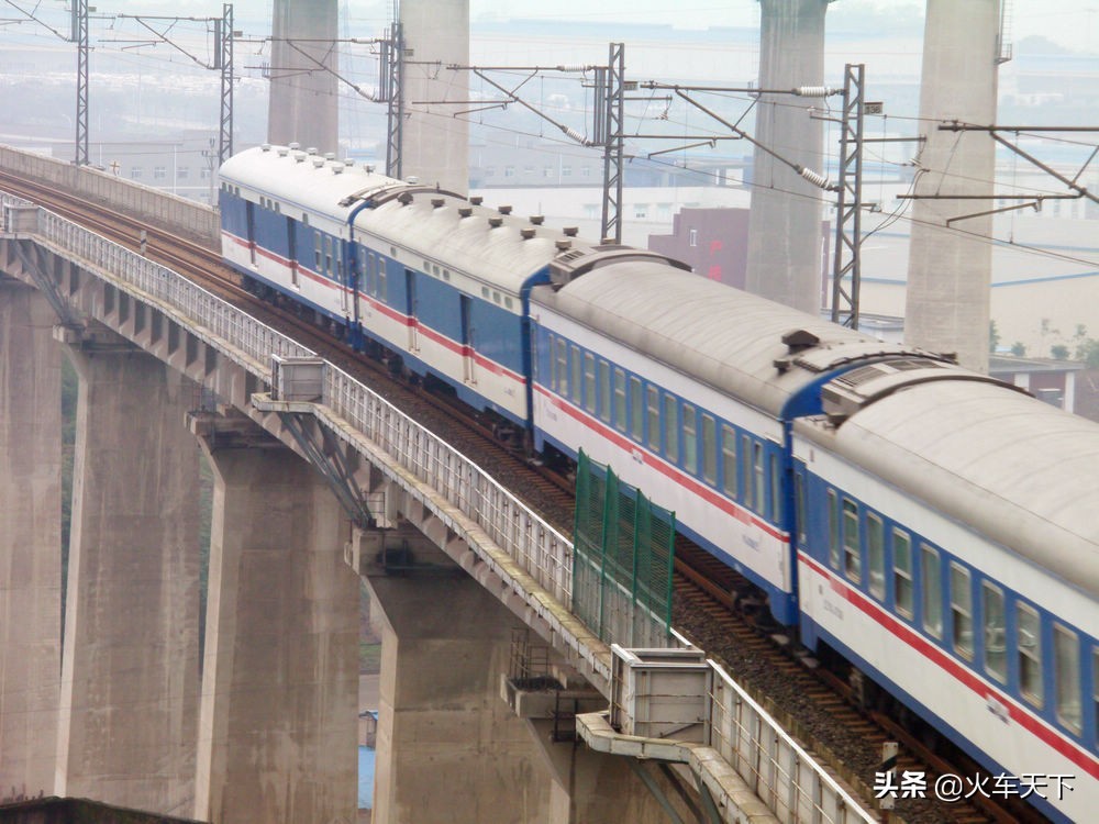 上世纪90年代中后期,中国铁路开始在一些既有线进行大提速,一款提速型的客车出现了,它叫25K,使用的蓝色涂装,最初构造时速160公里,但因为一些技术上的原因,实际运用也就跑个140公里的时速,使用这个车型的基本上是T字头的特快列车。