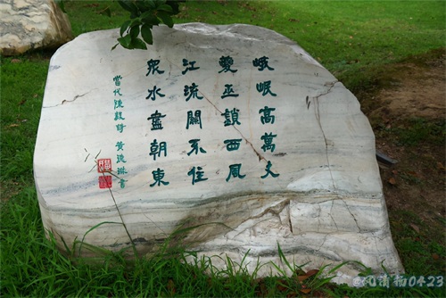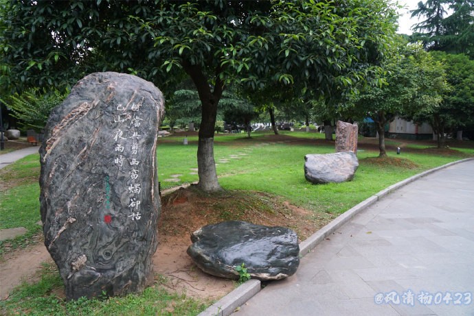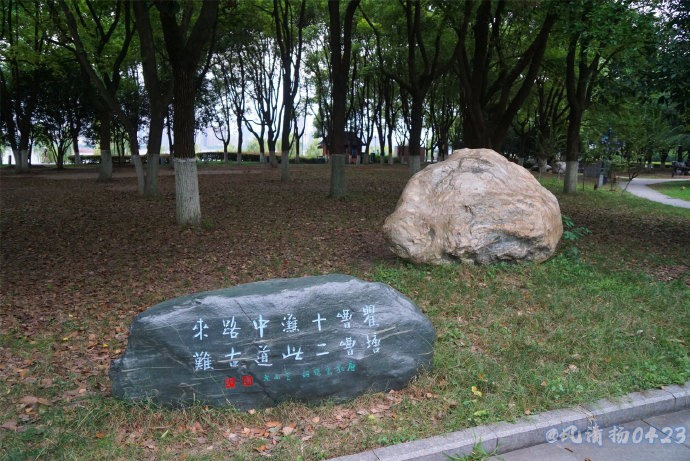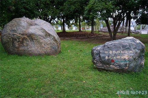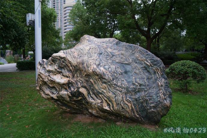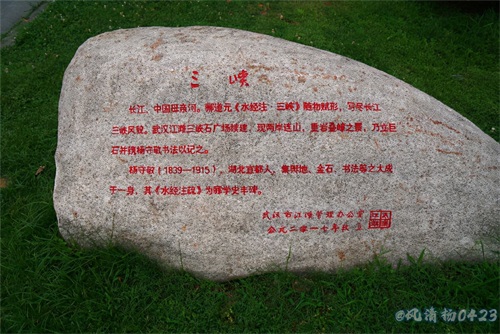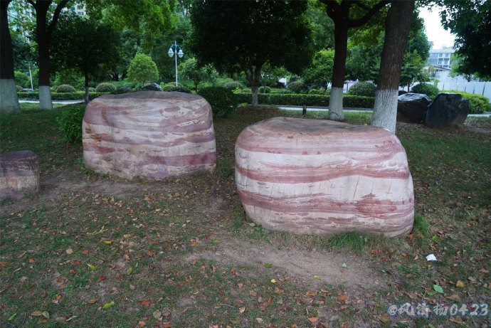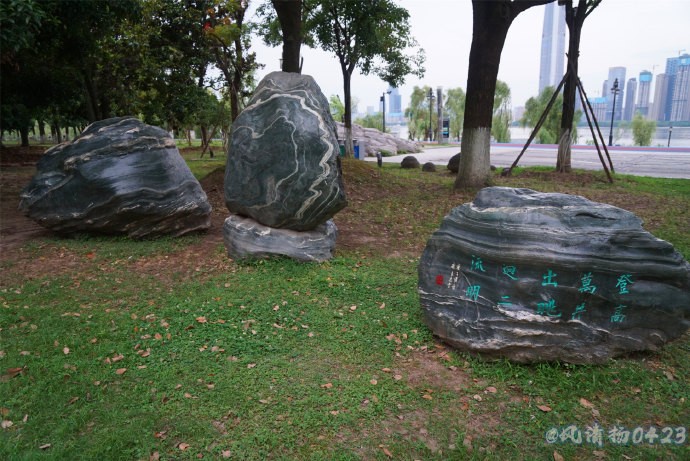 清晨,散步在汉口江滩上散步、欣赏江边的美景。发现在绿化带里有很多漂亮,有观赏价值的奇石,经询问得知是三峡石。