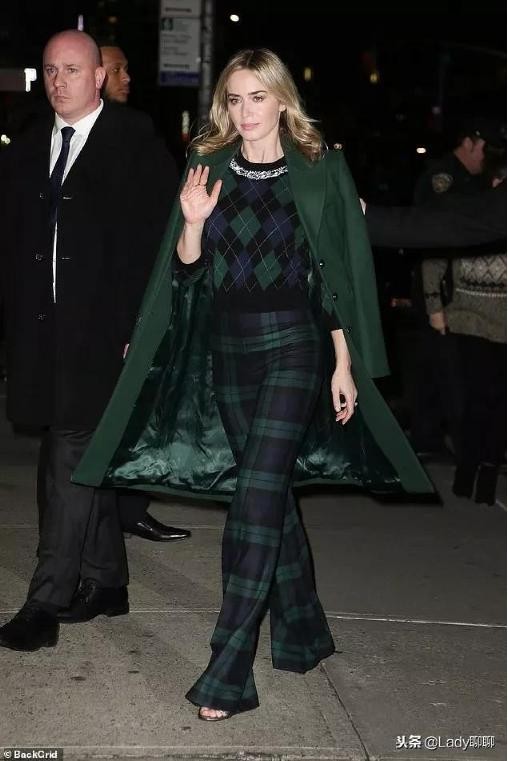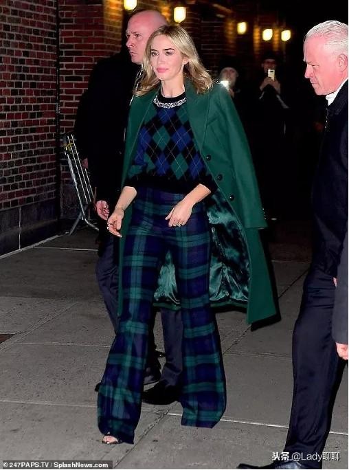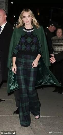 前不久,Emily Blunt在出席某活动时一一身墨绿的苏格兰格展现出自己的魅力。菱形格子上衣搭配格子长裤,再搭配上气质满满的大一,瞬间就将她的气场展现出来。