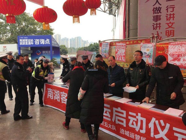 绵阳城区南湖汽车客运站、江油市汽车客运站等汽车站,先后同辖区运管所、派出所、巡特警大队举行春运首日启动仪式。据了解,2月5日至2月10日,南湖汽车站联合绵阳工商银行对三台线路返乡农民工,携手富临运业,开展免费乘车活动;2月14日,南湖汽车站还将开展送对联、福字、送汤圆、水饺及猜奖活动;春运期间将对所有旅客提供免费亲情电话、送水、绿色通道等特色服务。