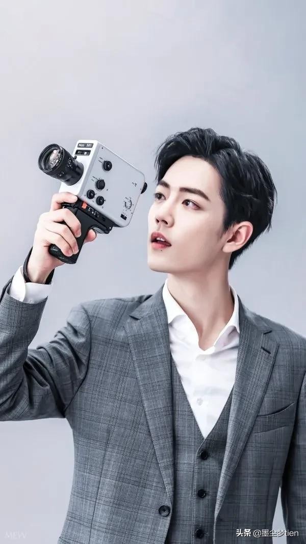 最后的这张图中的就是和前面完全不同的肖战了,可以看到在这张图中的肖战身上穿着格纹的西装,而格纹西装总是会给人一种非常成熟的感觉了,图中的肖战还将头发梳成了背头的样子,看上去也是非常帅气和一丝不苟的感觉,手中还拿着一个摄影机也是很让人心动的。
