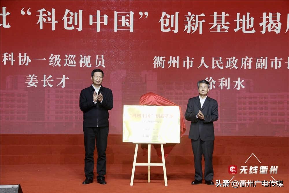 现场,省科协一级巡视员姜长才和衢州市人民政府副市长徐利水共同为“科创中国”创新基地揭牌。