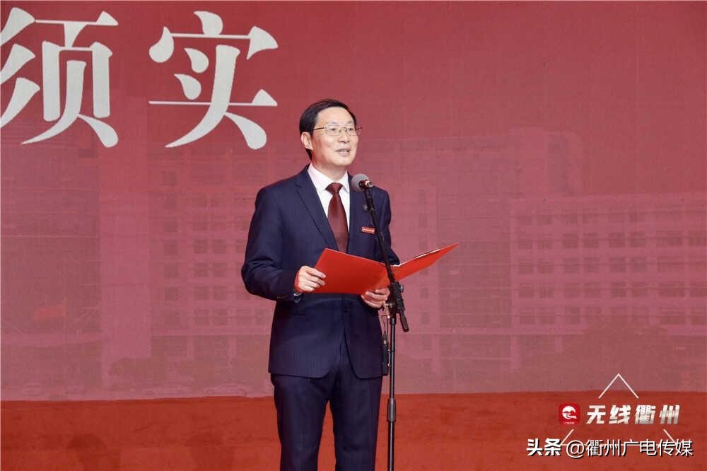 衢州职业技术学院党委书记徐须实致辞。他代表全校8000名师生员工,向莅临大会的各位领导、各位来宾表示热烈的欢迎和衷心的感谢!