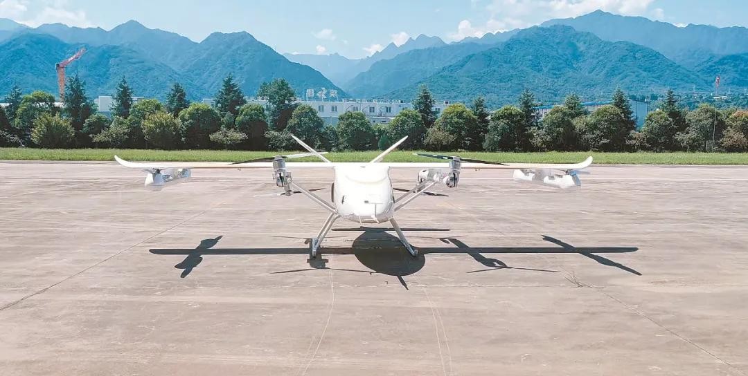 捷飞智航科技(西安)有限公司的混动倾转旋翼 eVTOL(电动垂直起降飞行器)正在完成地面测试。(受访单位供图)