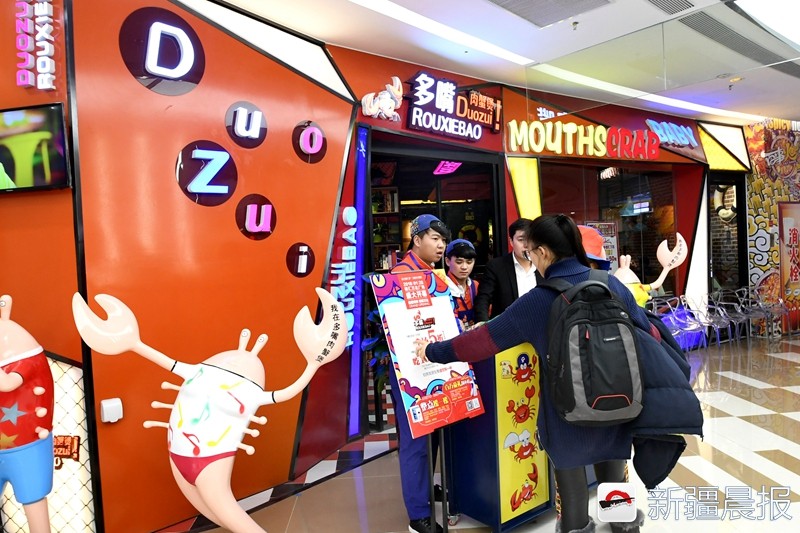 1月26日下午,新疆晨报记者来到德汇万达广场时,试营业的广场已是热闹非凡。1楼到6楼悬挂着开业横幅,楼层内不时有工作人员发放开业打折优惠信息。不少市民已在这里购物、消费。