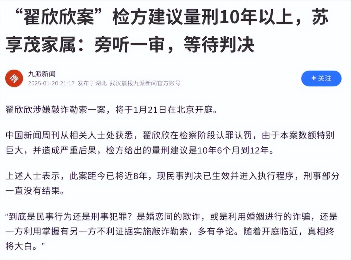 九派新闻——“翟欣欣案”检方建议量刑10年以上,苏享茂家属:旁听一审,等待判决