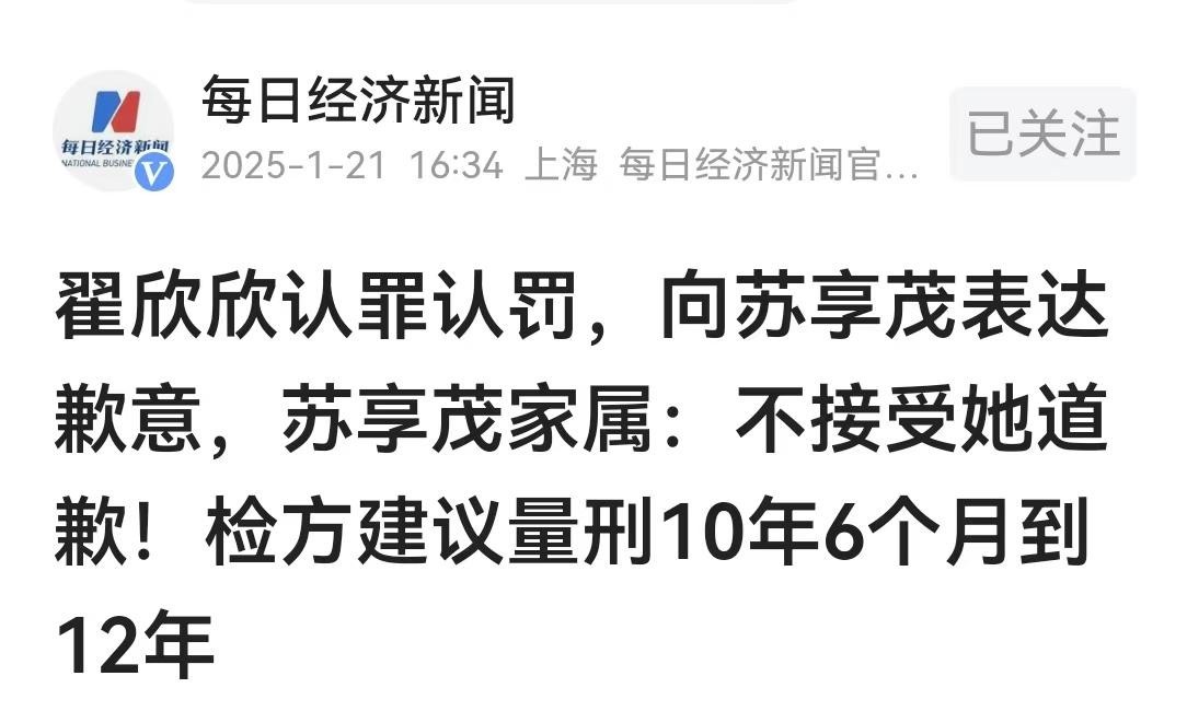 经过长时间的审理,在2025年1月21日终于开庭,而在法庭了,翟欣欣对自己的所作所为终于认罪。
