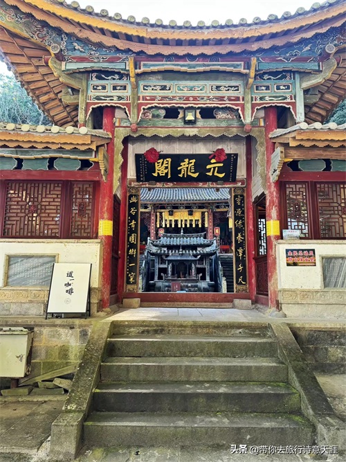 元龙阁,原为观音殿,清朝乾隆二十七年(1762年)在观音殿前兴建楼阁,取名元龙阁,儒、释、道三教合一的道观。