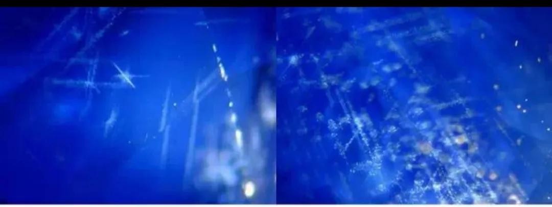 它的颜色不均匀,常形成界线分明的蓝色及近无色的色带。当你把克什米尔蓝宝石用显微镜放大30-50倍,你会看到雪片状的内含物和乳白色的条带,也正是因为它们,克什米尔蓝宝石才会有独特的“天鹅绒”效应。