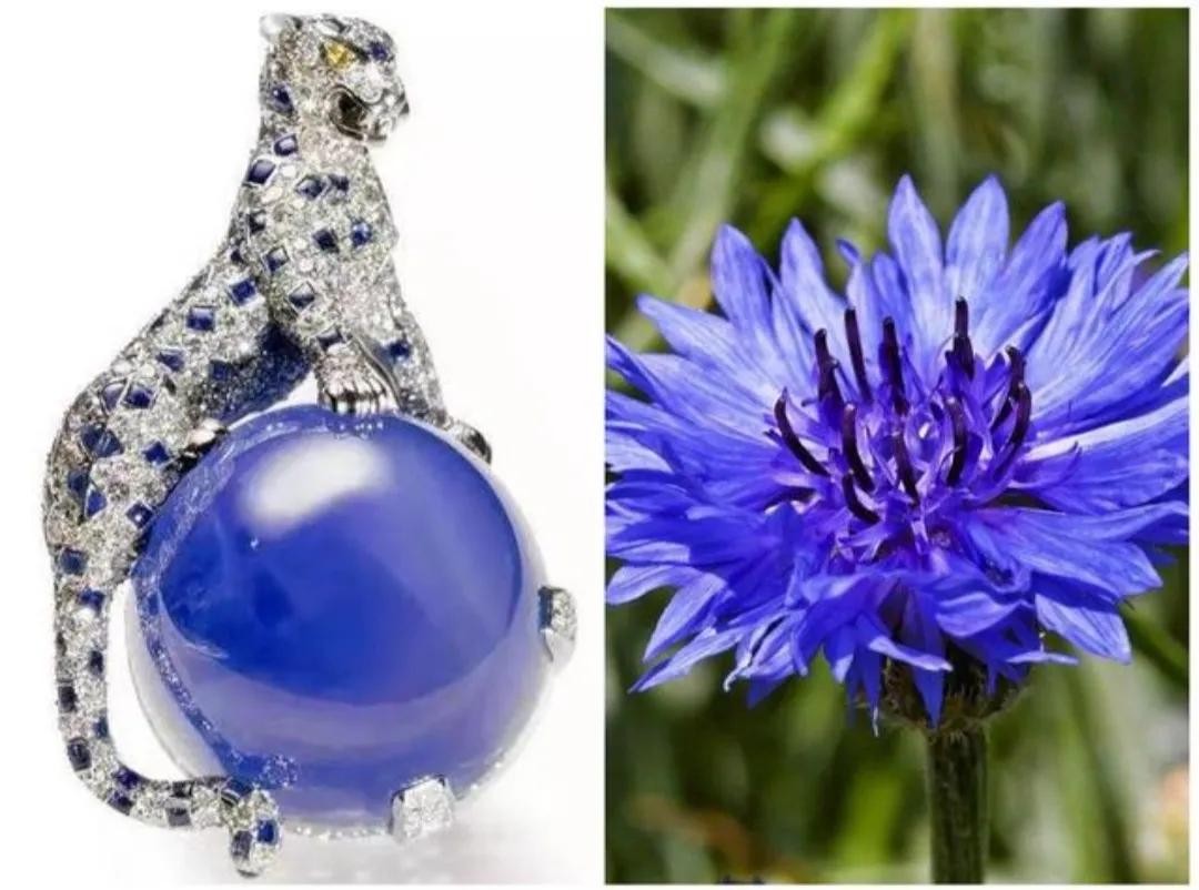 蓝宝石被称为九月生辰石,克什米尔(也译做喀什米尔)蓝宝石一直被誉为蓝宝石中的极品,“克什米尔蓝宝石呈现出一种类似高原天空般纯正、浓郁又微微带紫的正蓝色,这种蓝色与德国的国花矢车菊(Cornflower Blue)有颇相似之处,因此又被称作矢车菊蓝宝石。