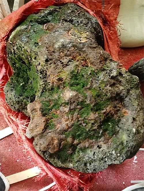 史先生尝试将这块石头搬运到岸上,但是经常干力气活的他发现居然搬不动。无奈,他花钱雇了三位工人与自己一起,用两根杠子将石头绑住,花了一上午时间将这块石头搬上了停在岸边的车里,运到了自己的仓库中。据史先生说,这块石头至少 600 斤重。