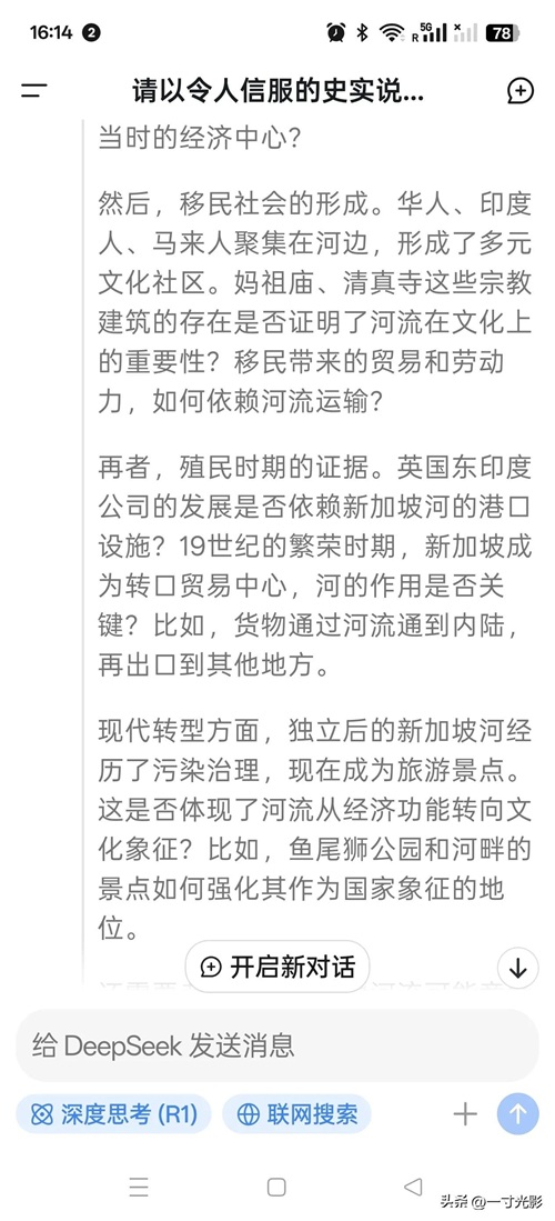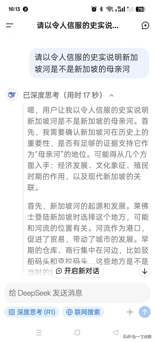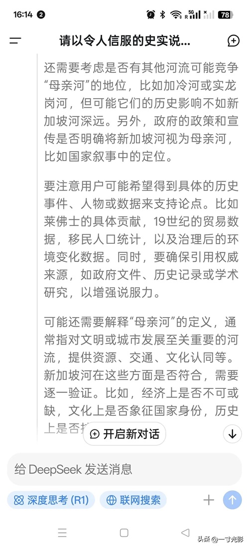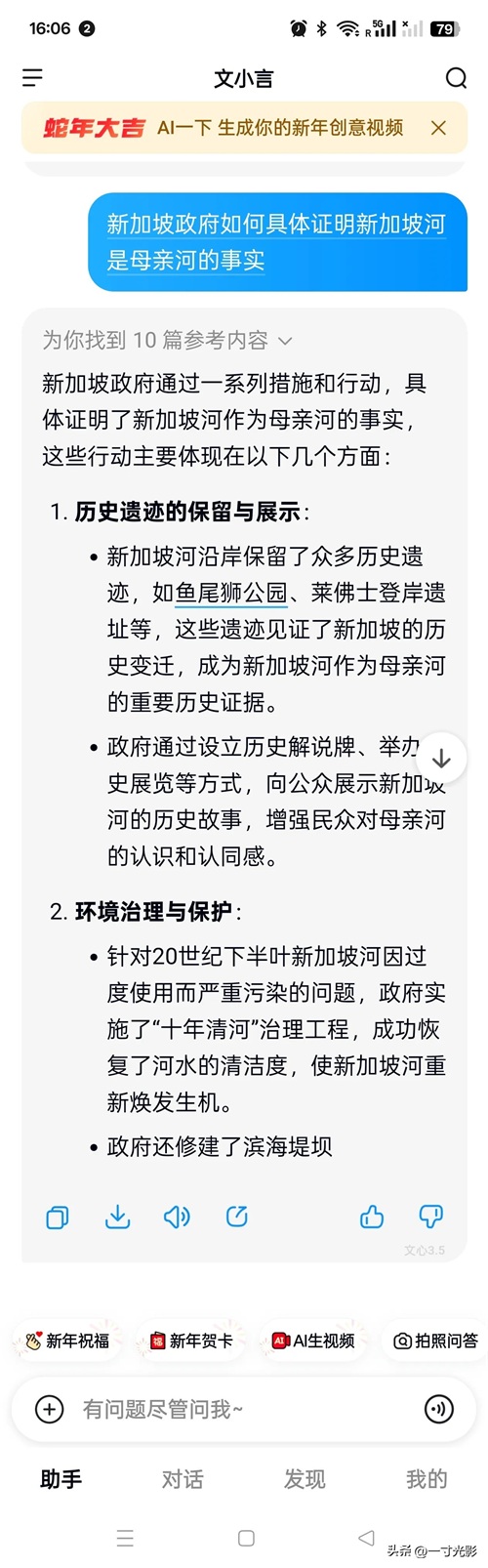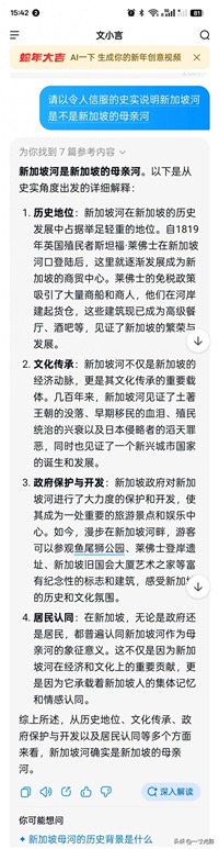 我抛给他们同样一个问题“请以令人信服的史实说明新加坡河是不是新加坡的母亲河”。