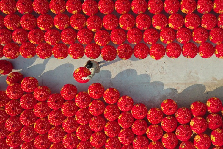挂红灯笼是中国人过年的传统习俗。红色在中国文化中代表着吉祥、喜庆与热情,是驱邪避祟的颜色。挂红灯笼象征着团圆、吉祥和驱邪避凶,也寓意着红红火火的日子。石家庄市藁城区梅花镇屯头村被誉为“中国宫灯第一村”,每10盏宫灯中就有8盏出自这里,年销量超1亿对,约占全国宫灯市场份额的80%。