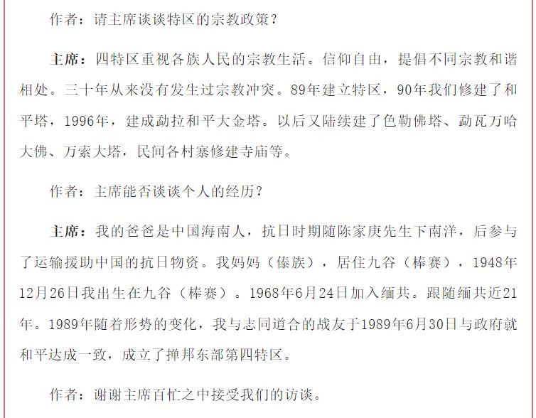 四特区主席林明贤先生在缅甸掸邦棒赛出生长大,父亲海南人,母亲傣族,他会中文,傣语,缅语。他傣族名叫“昭再林”,现在他们官方用缅语名字“吴再林”(不姓吴,和吴奈温,吴努是一个习惯),网上都把他写成“海南知青”,但是他在2019年第四特区和平发展30周年庆典上,对他们记者准确回答:自己是缅甸棒赛华侨。