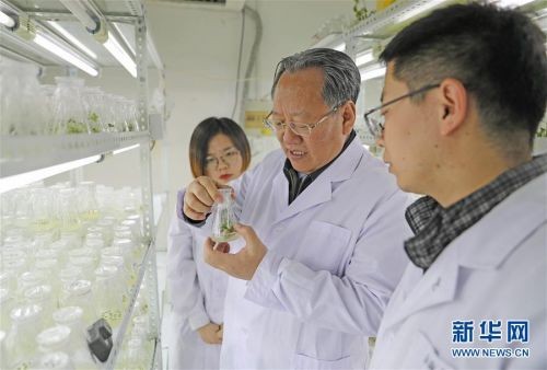 2019年1月23日,李天来(中)在沈阳农业大学指导学生观察作物育苗情况。新华社记者 杨青 摄