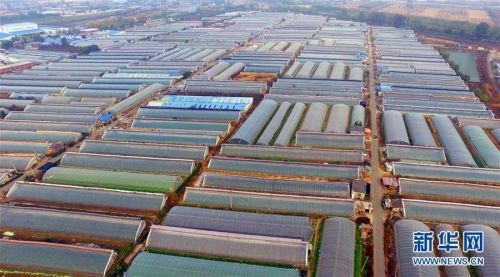 2018年10月22日在沈阳市于洪区拉马台村拍摄的日光温室大棚(无人机拍摄)。新华社记者 杨青 摄