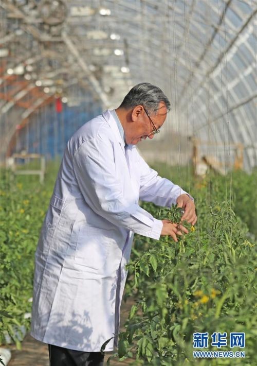 2018年10月15日,李天来在沈阳农业大学日光温室大棚里查看作物生长情况。新华社记者 杨青 摄
