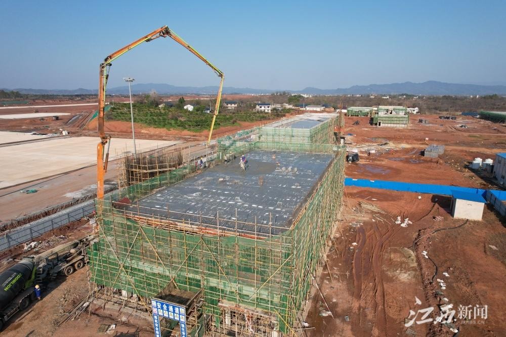 江西新闻客户端讯(江西日报全媒体记者唐燕通讯员杨鑫)2月7日,瑞金机场项目建设现场一片繁忙景象。挖掘机、起重机、工程车紧张作业,工人们或运输材料,或绑扎钢筋,在项目工地来回穿梭。“春节以来,我们项目建设不停工,全力推动项目建设提速增效,奋力冲刺今年10月份试飞通航目标任务。”瑞金市机场建设有限公司副总经理刘峰说。